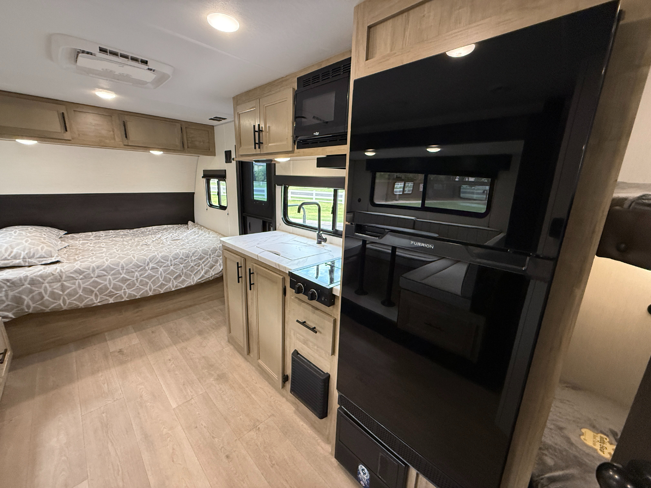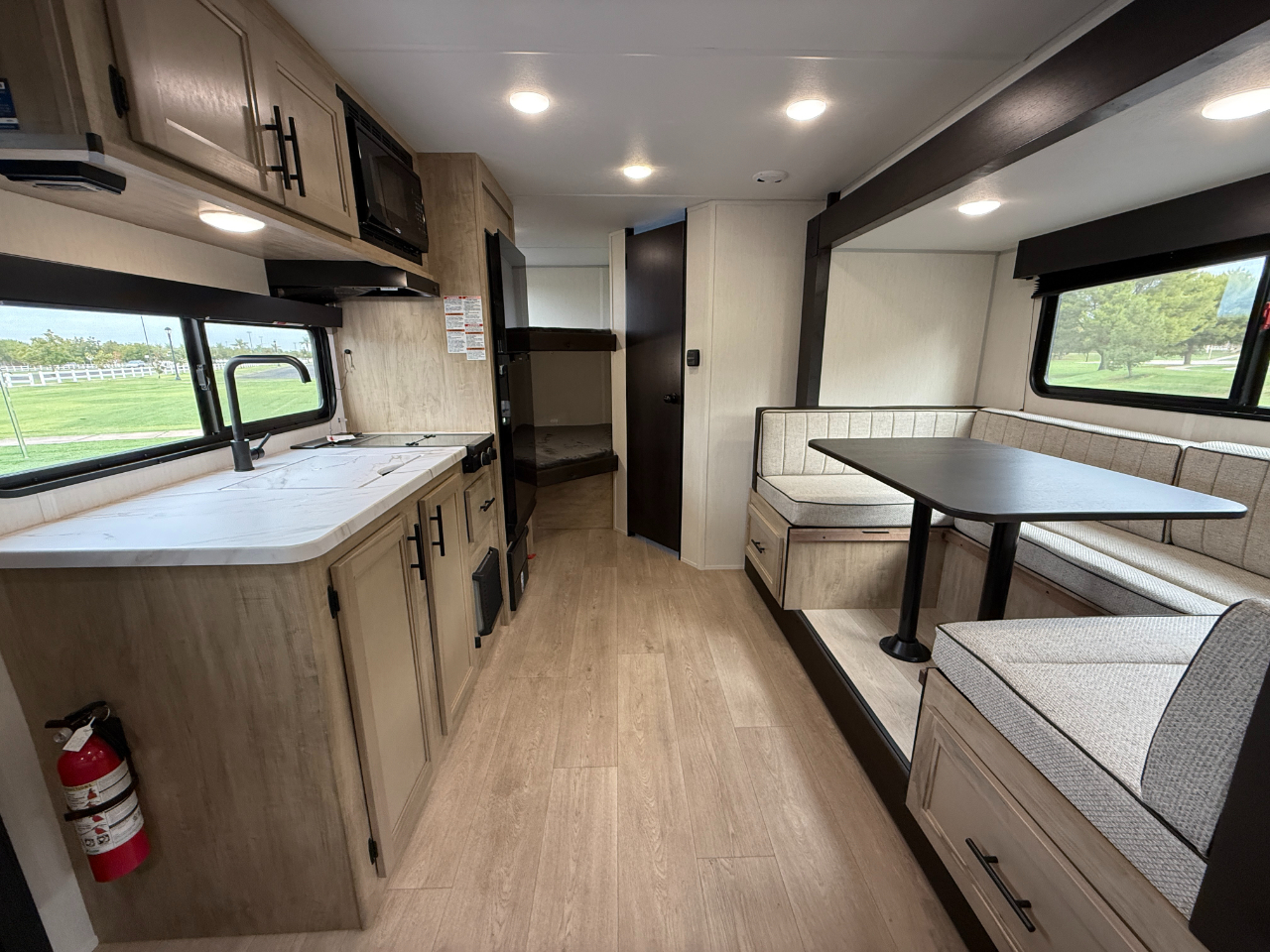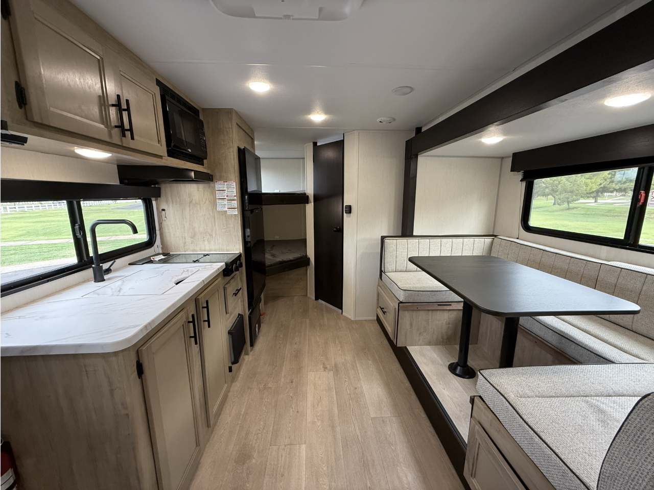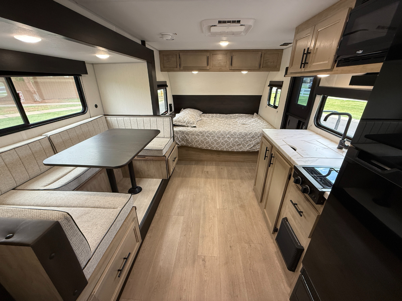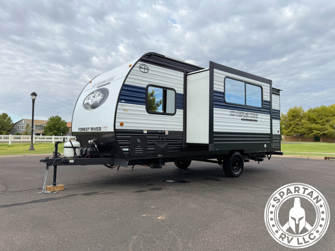 The 2026 Cherokee Wolf Pup 17JW is a compact, ultra-lite travel trailer designed for easy towing and maximum usability. At just under 24 feet long and under 4,500 lbs UVW, it’s an excellent fit for couples or small families who want modern features in a nimble package.