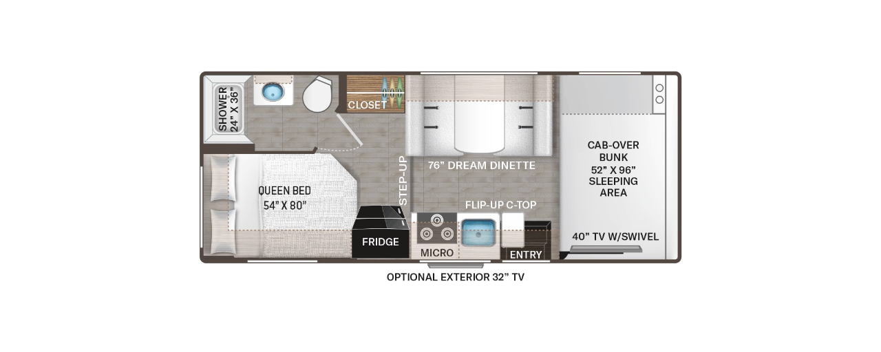 • Durable fiberglass exterior with aerodynamic cab-over design